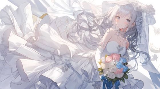 ふりふり、ふわふわのドレス美少女、ウエディングドレス美少女 AIサービス「NijiJourney」で作成しました。